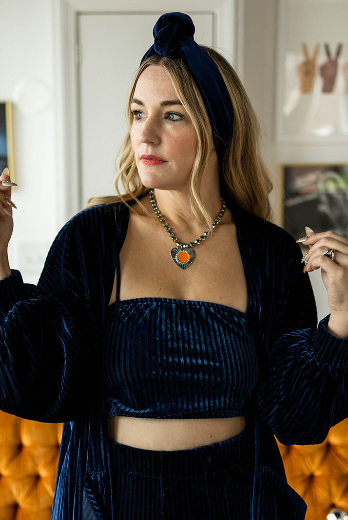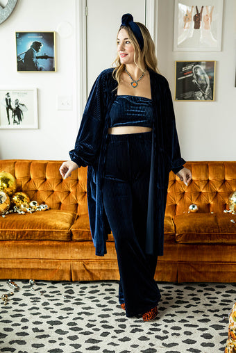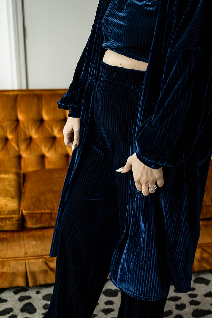 2 reviewsfelicity duster in navy ribbed velvet