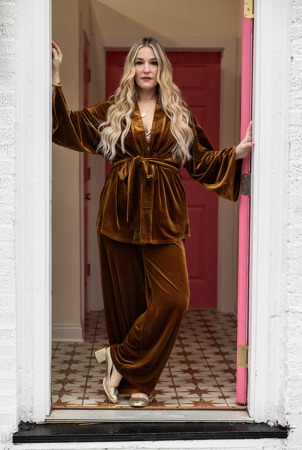 1 reviewsonny wide leg pant in gold dust velvet